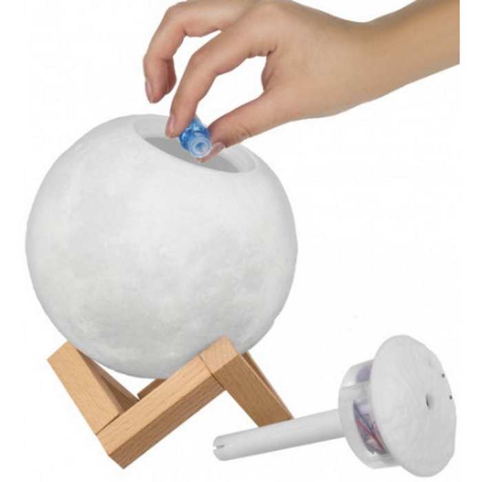 AROMATERAPIE – lampa are o functie de aromaterapie extrem de utila. Dupa turnarea uleiului in apa, umidificatorul elibereaza arome cu proprietati relaxante (sunt permise numai produse solubile in apa - in caz contrar umidificatorul se poate deteriora). Setul include pana la 3 astfel de uleiuri!