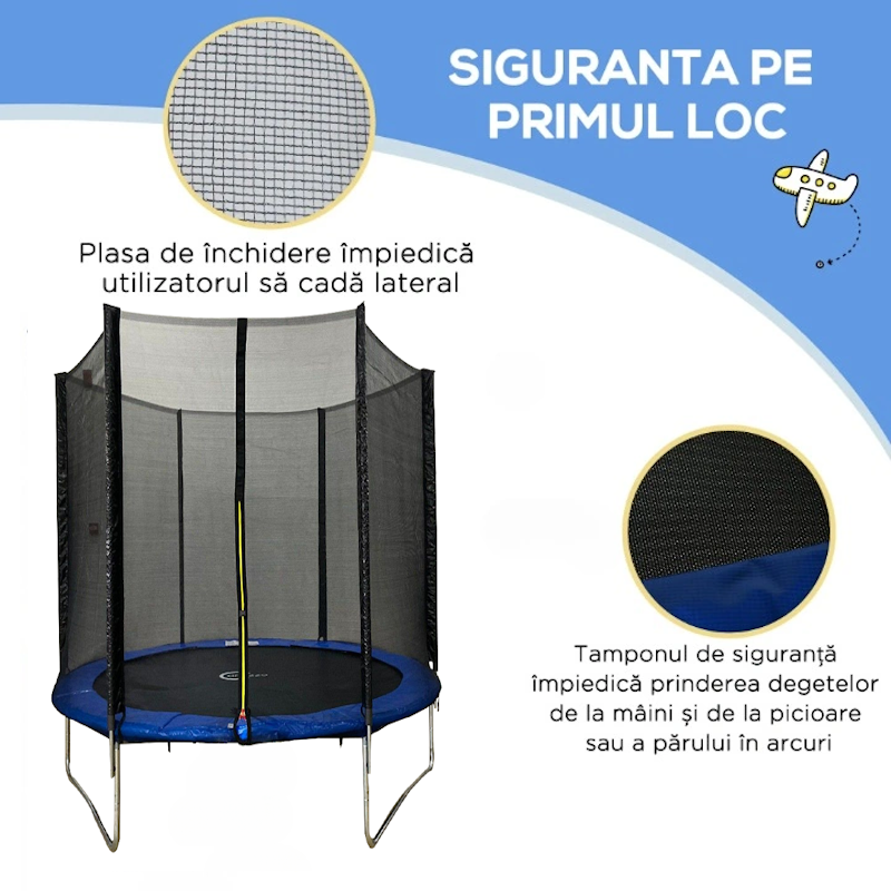 Trambulina beneficiaza de certificat de siguranta, conform EN71-1 & EN71-2 EN71-3 & EN71-14.
