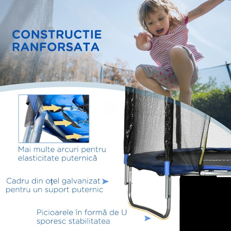 Un covoras de protectie care acopera complet arcurile si cadrul, copilul dvs. va putea sari in siguranta si liber pe trambulina. Distractia pe trambulina va fi plina de bucurie si experiente de neuitat!