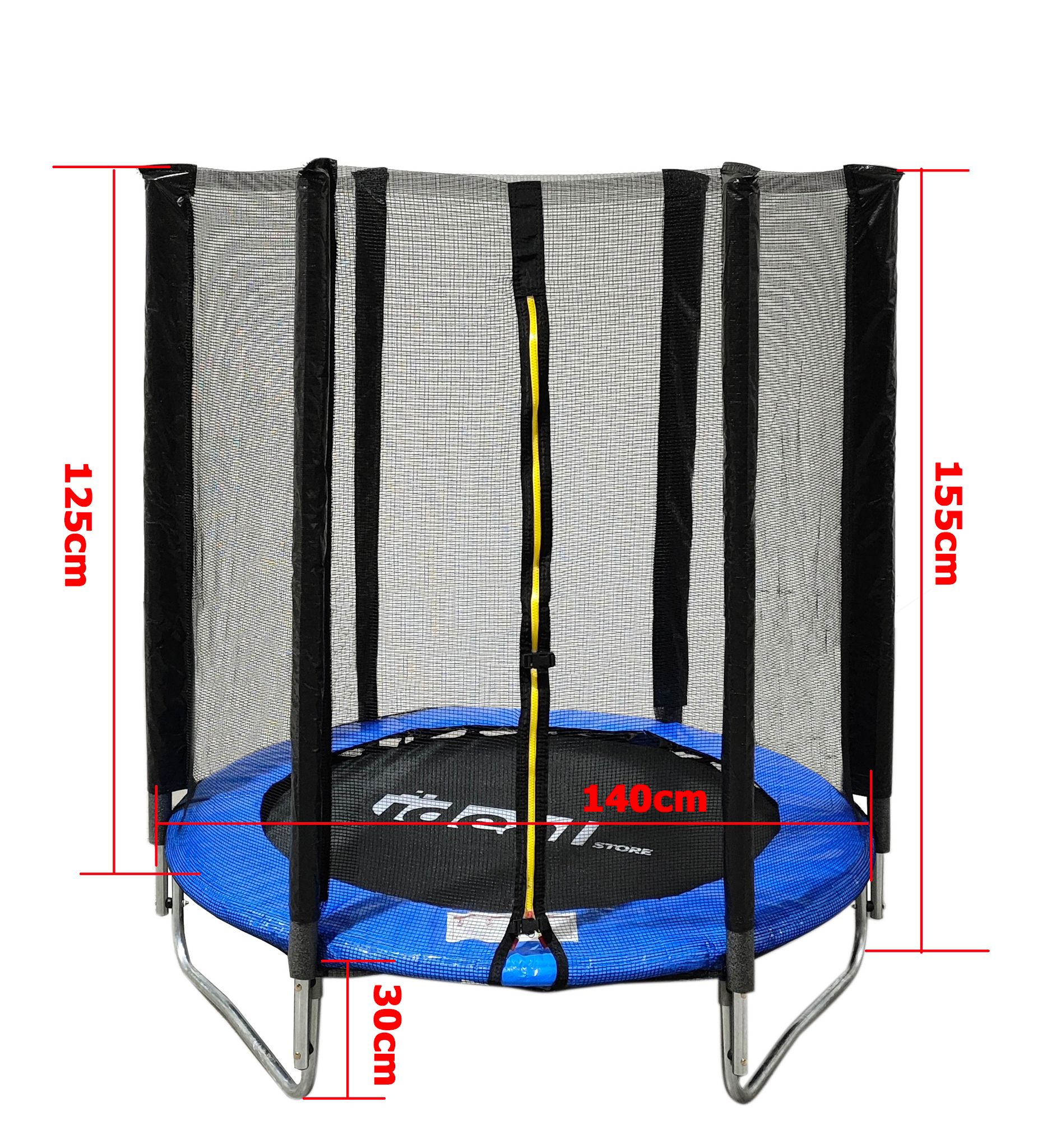 Trambulina pentru copii cu plasa de protectie IDL, FREEDOM JUNIOR JUMP COLLECTION, Diametru 140 cm, Fabricata din Otel, Echipata cu 30 de arcuri galvanizate de Sustinere ce suporta pana la 100 de Kg, Rezistenta la intemperii si la Razele UV, Certificat de siguranta TUV-GS-CE